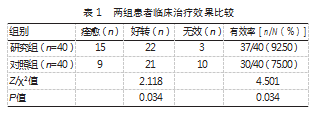 2.1两组患者临床治疗效果比较