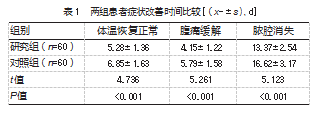 2.1两组患者症状严重程度比较