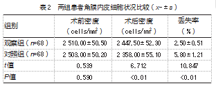 2.2两组患者角膜内皮细胞状况比较