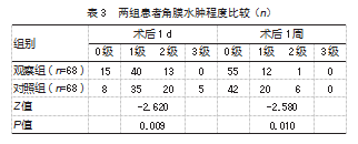 2.3两组患者角膜水肿程度比较