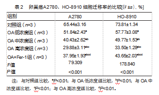2.2不同浓度OA对卵巢癌A2780、HO-8910细胞迁移能力的影响