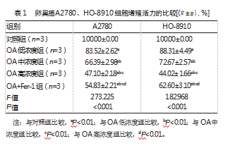 2.1不同浓度OA对卵巢癌A2780、HO-8910细胞增殖活性的影响