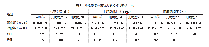 ④血流动力学指标:用药前与用药后24、48 h的心率、平均动脉压、血氧饱和度。