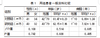 随机选取2024年1月—2025年6月青海仁济医院收治的150例HFrEF患者为研究对象,按不同治疗方法分组,每组75例。两组一般资料比较,差异均无统计学意义(P均>0.05),有可比性,见表1。本研究经青海仁济医院伦理委员会批准(YJ206-003-10),患者或患者家属签署知情同意书。