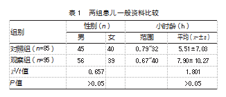 纳入标准:①符合高胆红素血症诊断标准,临床诊断参照《新生儿高胆红素血症诊断和治疗专家共识》[4];②血清总胆红素(total bilirubin,TBIL)值达到或超过对应小时龄及危险因素的光疗干预标准,诊断为病理性黄疸,且病情稳定,新生儿行为神经评分(Neonatal Behavioral Neurological Assessment,NBNA)[5]≤35分;③新生儿出生体质量>2 500 g,且胎龄≥35周。
