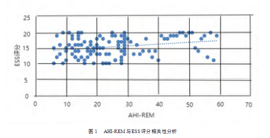 Pearson相关性分析的结果表明,AHI-REM严重程度与ESS评分呈正相关(r=0.623,P<0.001)。见图1。