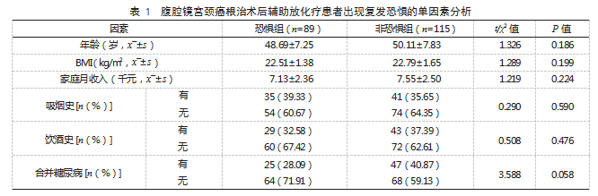 腹腔镜宫颈癌根治术后辅助放化疗患者出现复发恐惧的影响因素论文